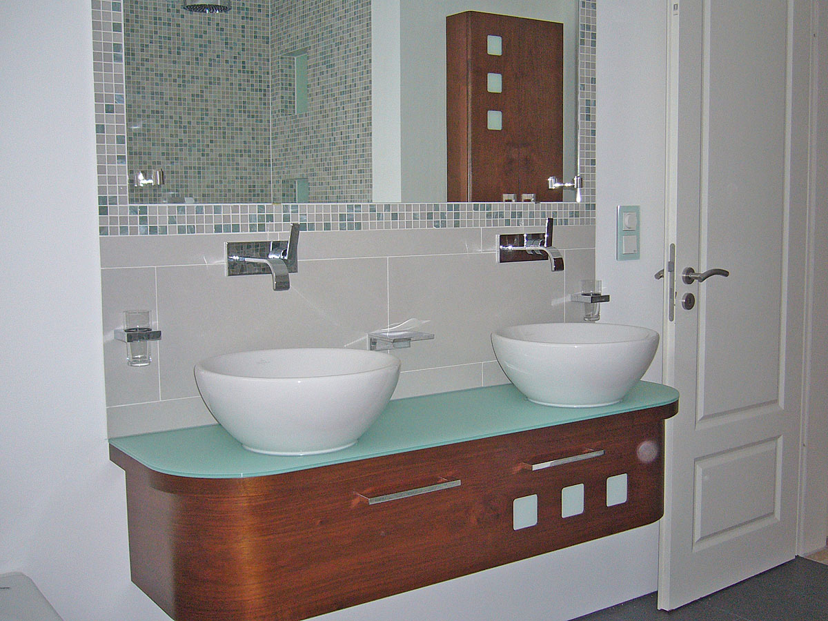 So sollen die Sanitärobjekte wie Waschbecken, Dusche und Wanne ergonomisch durchdacht und optisch ansprechend integriert sein, Ablageflächen und Stauraum geschaffen werden. Dies gilt es noch mit dem erforderlichen Oberflächenschutz und schicker Optik zu kombinieren.